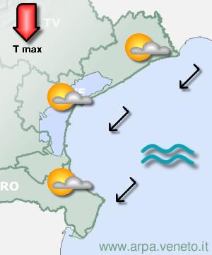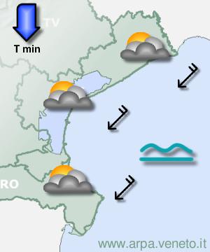 Previsione: Schiarite anche ampie alternate a nuvolosità irregolare, a tratti consistente; possibili precipitazioni sporadiche e discontinue, anche a carattere di rovescio o locale temporale. Temperature diurne in diminuzione rispetto a domenica. Venti da deboli a moderati dai settori orientali.